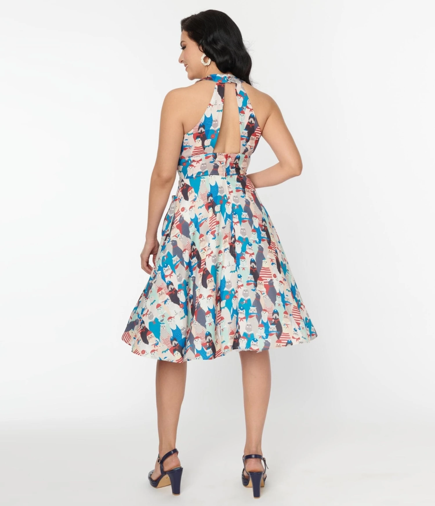 Unique Vintage La Jolla Cove Print Halter Swing Dress