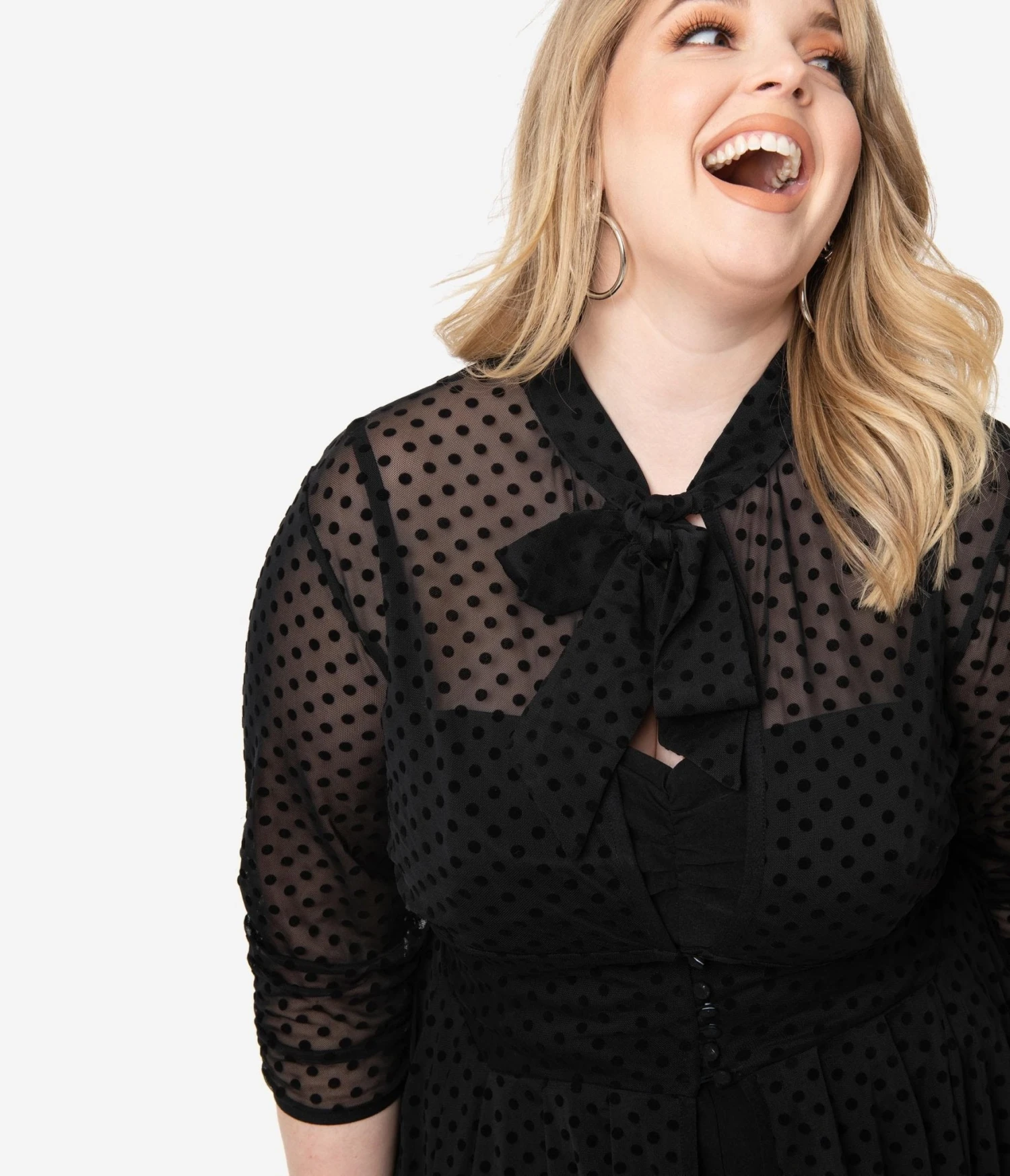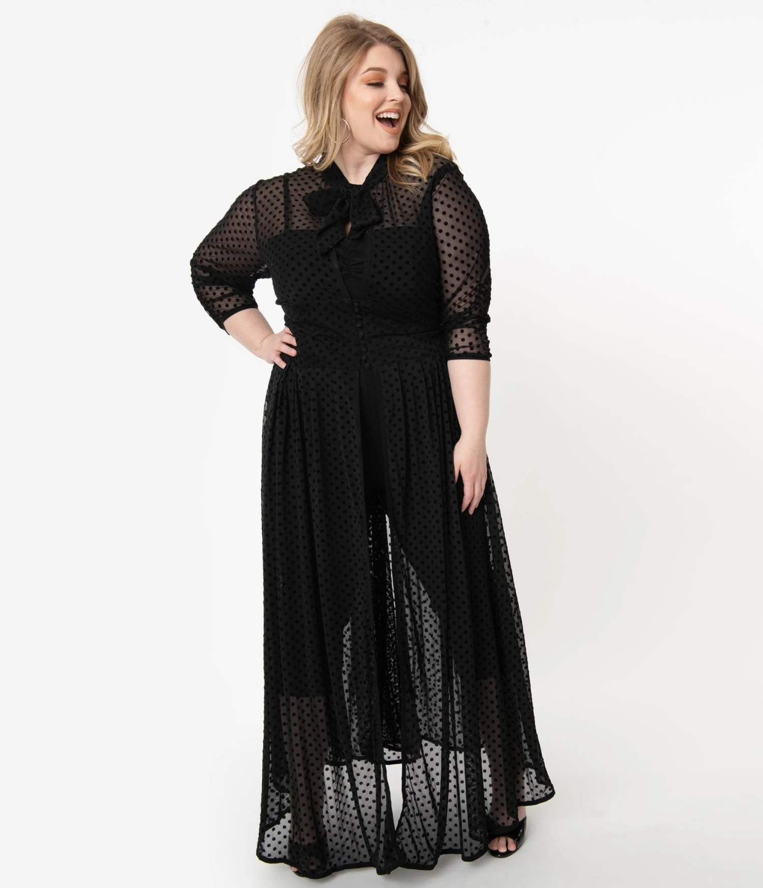 Unique Vintage Plus Size Black Swiss Dot Starlet Duster