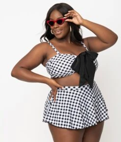 Be the first to review “Unique Vintage Plus Size Black & White Gingham Bow Rialto Bikini Top” Cancel reply