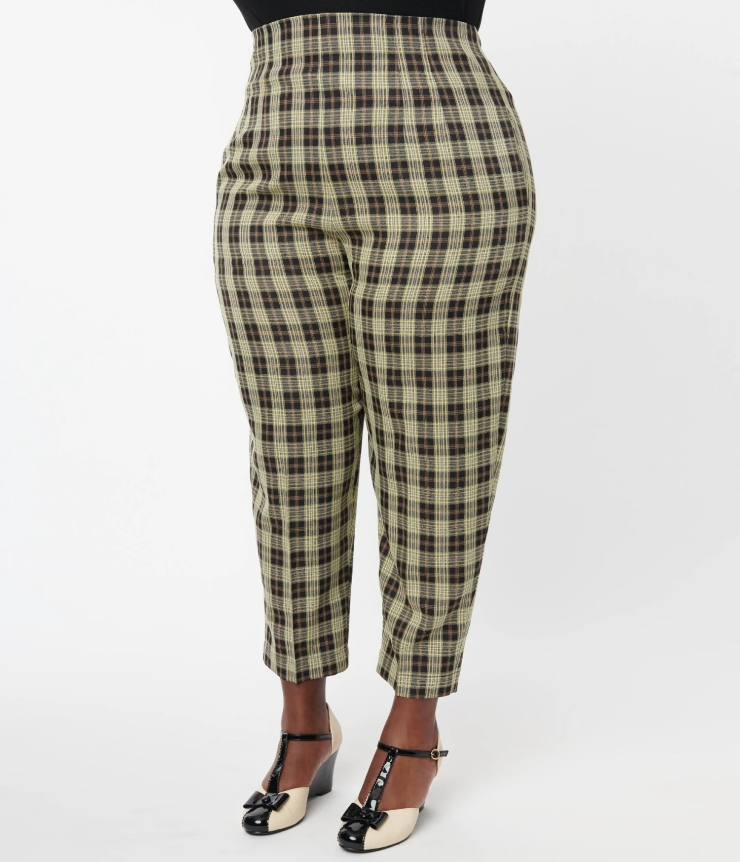 Unique Vintage Plus Size Cream & Black Plaid Front Pleat Pants