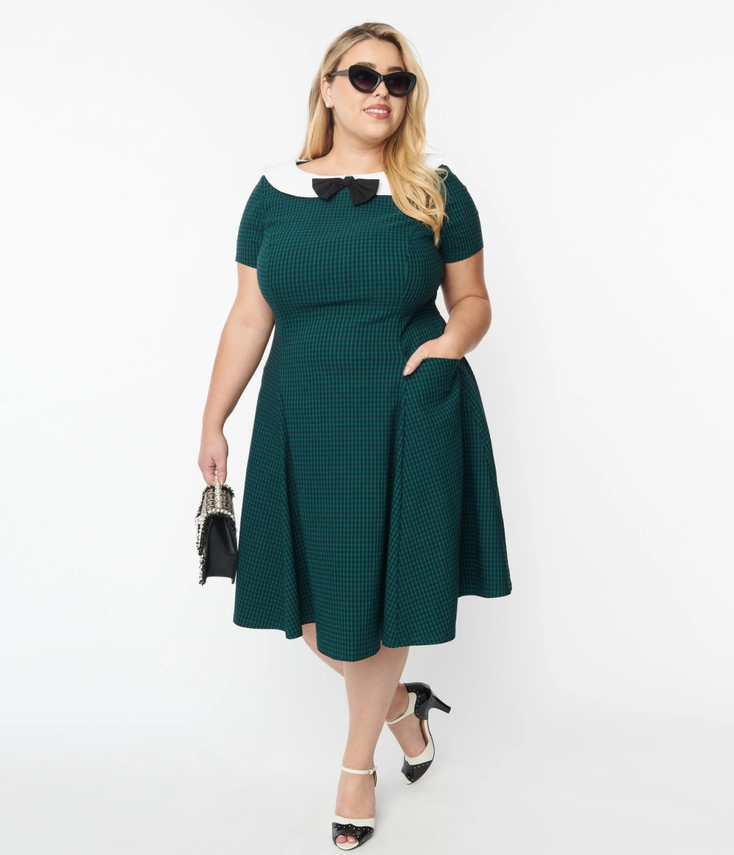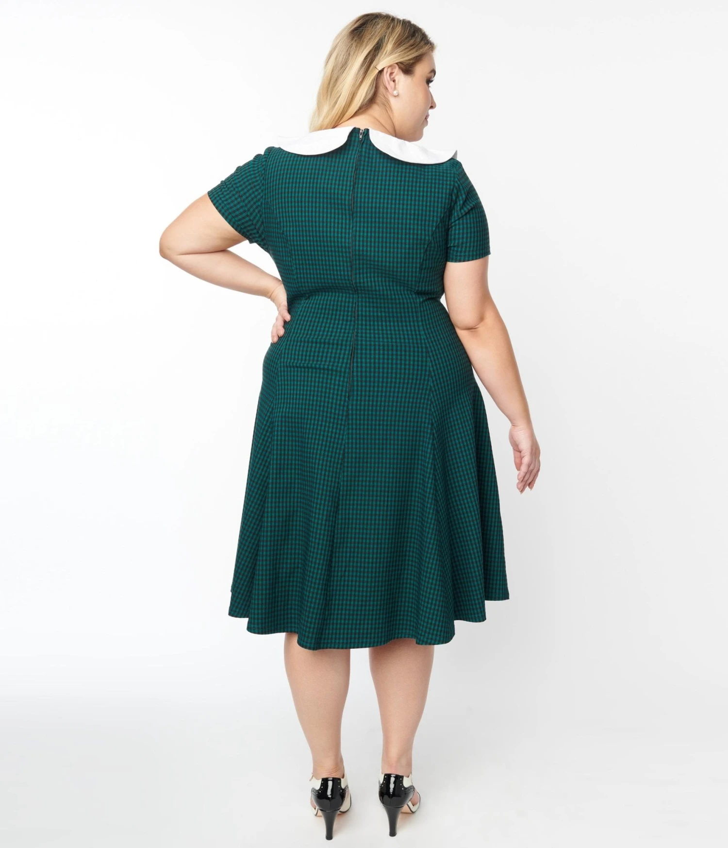 Unique Vintage Plus Size Green & Black Gingham Eloise Swing Dress