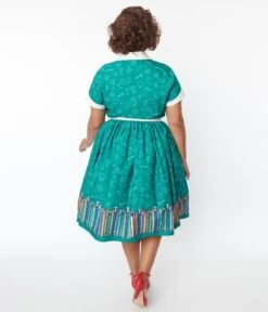 Unique Vintage Plus Size Green Classroom Alexis Swing Dress
