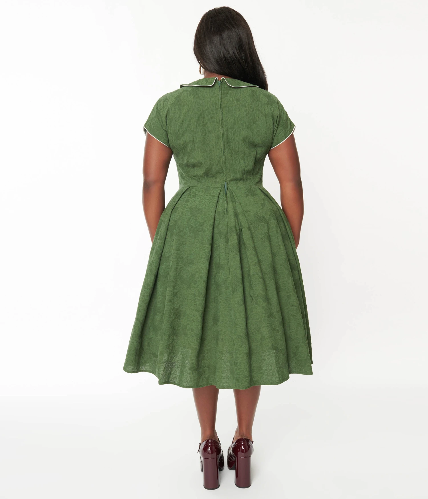 Unique Vintage Plus Size Green & Ivory Black Dot Swing Dress