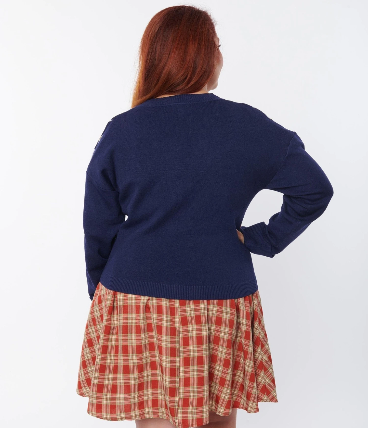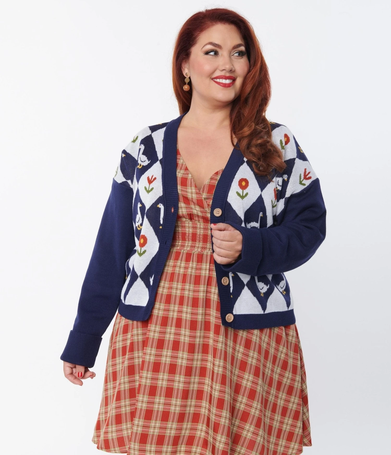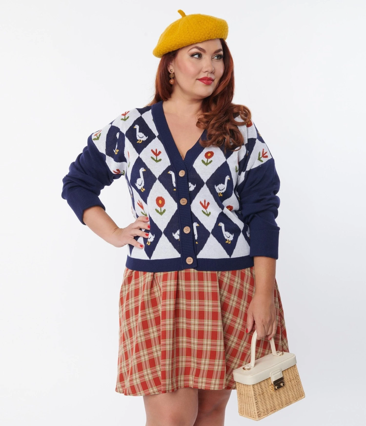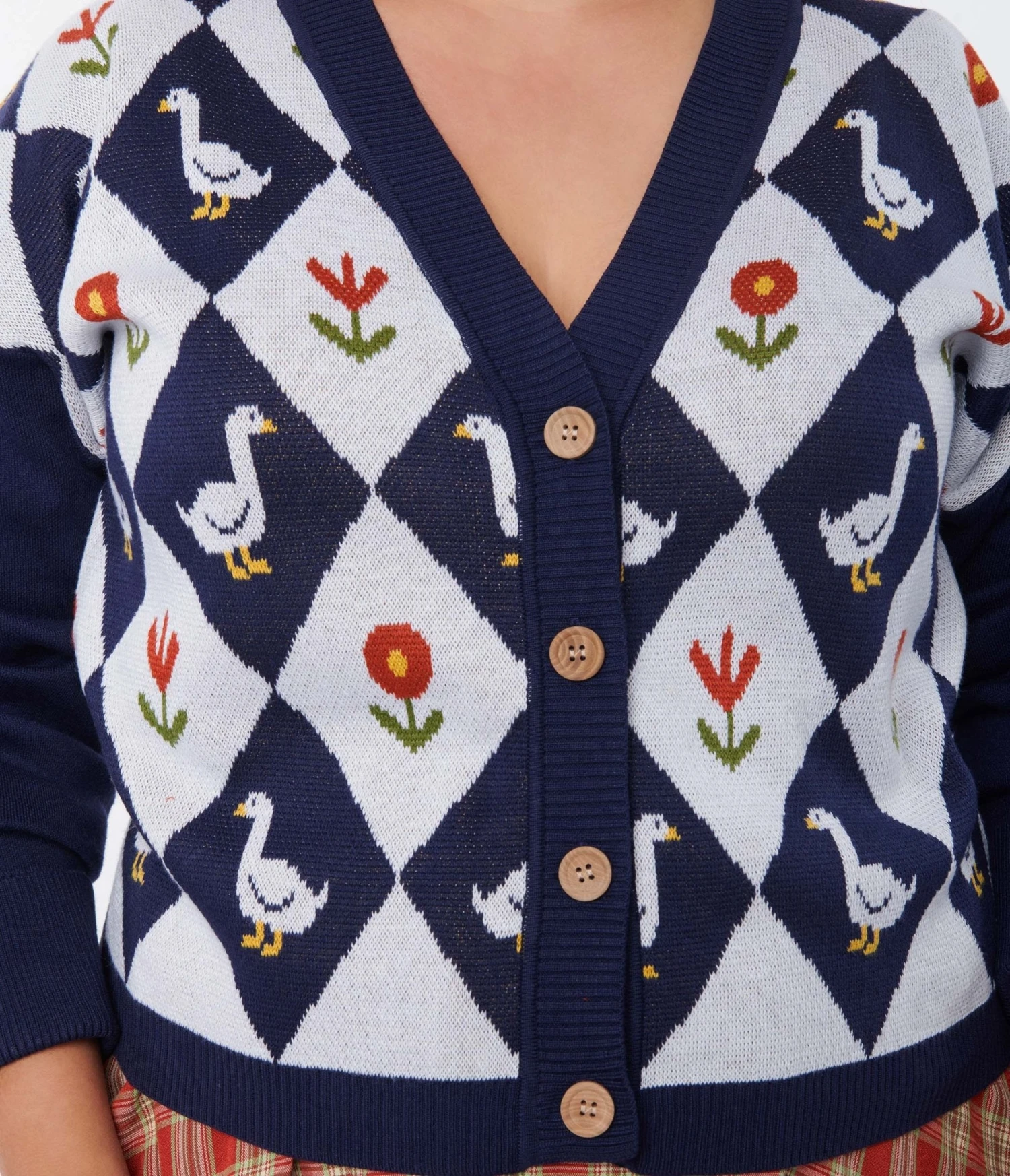 Unique Vintage Plus Size Navy & Duck Argyle Sweater Cardigan