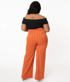 Be the first to review “Unique Vintage Plus Size Orange Windowpane High Waist Ginger Pants” Cancel reply