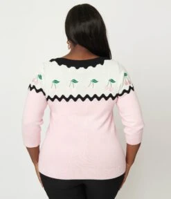 Unique Vintage Plus Size Pink & Black Cherry Sweater