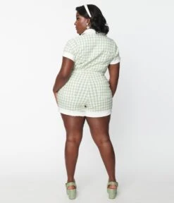 Unique Vintage Plus Size Sage & White Gingham Patsy Romper