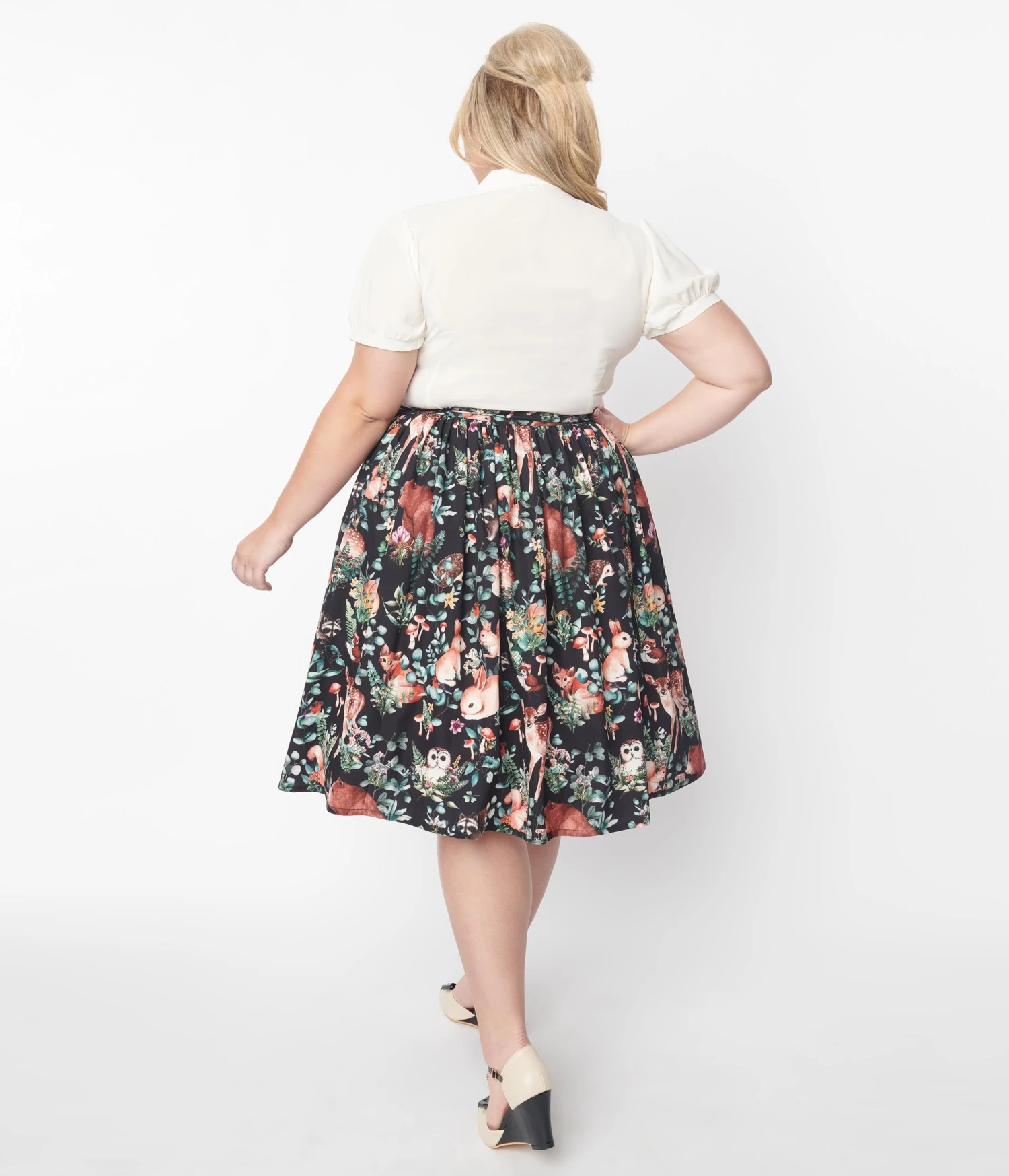 Unique Vintage Plus Size Woodland Creature Print Swing Skirt