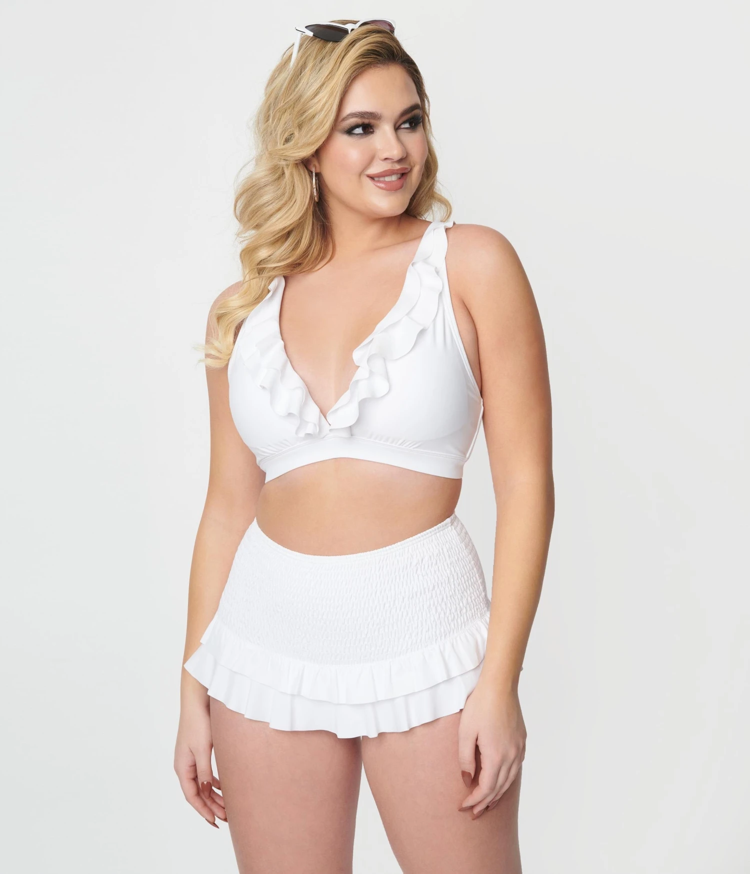 Be the first to review “Unique Vintage White Shirred Skirt Swim Bottom” Cancel reply