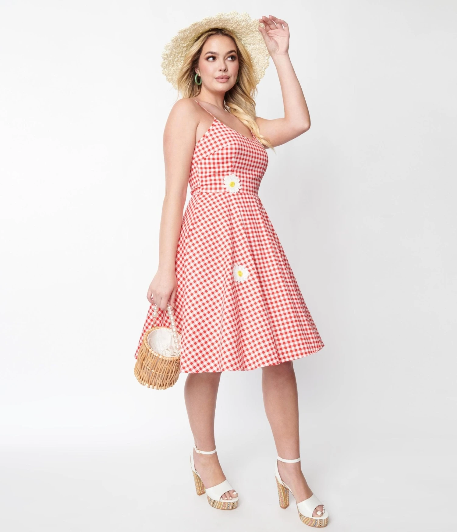 Voodoo Vixen 1950s Style Red & White Gingham Daisy Dolly Swing Dress