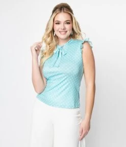Be the first to review “Voodoo Vixen Mint Polka Dot Tie Neck Top” Cancel reply