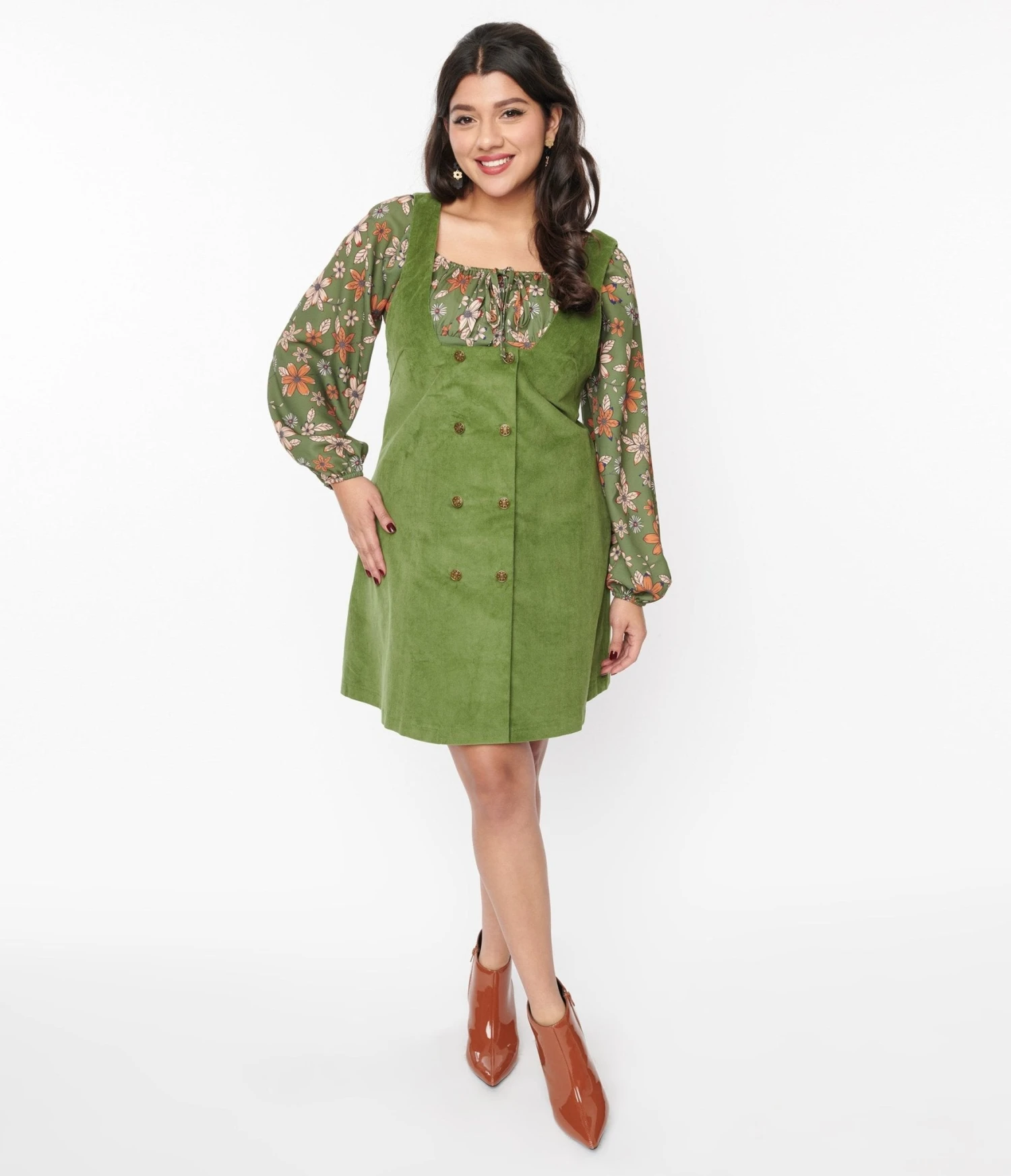 Voodoo Vixen Olive Green Corduroy Pinafore Shift Dress