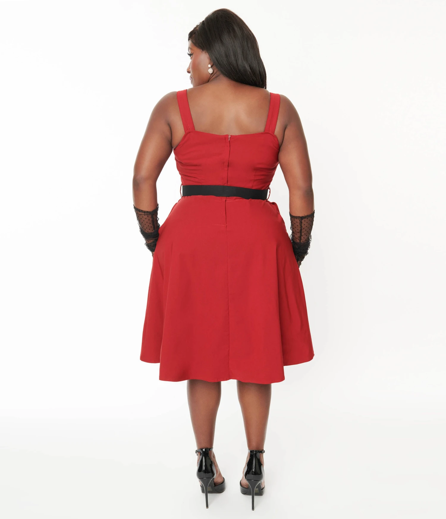 Voodoo Vixen Red & Black Heart Buckle Flare Dress