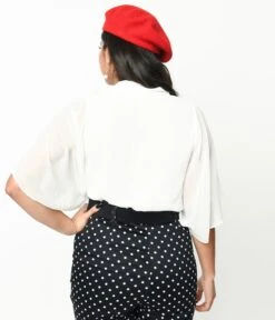 Made from a lovely lightweight white chiffon, this blouse is a dream come true for those who love comfort without compromising style. The flowy short bat wing sleeves give it a unique and feminine touch, making you feel effortlessly elegant. With its flattering V-neckline, it’s perfect for both casual outings and special occasions.