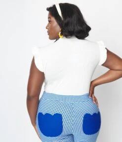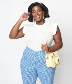 Unique Vintage Plus Size Blue Gingham Ruffle High Waist Swim Bottom